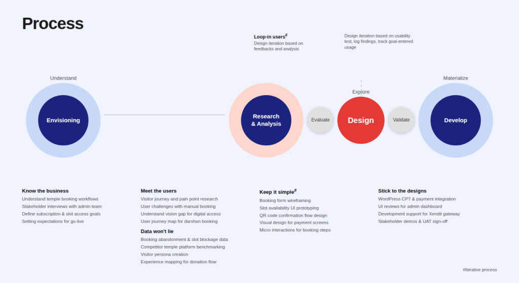 A significant percentage of bookings were abandoned without payment, causing revenue leakage. Donation tracking was managed manually, making reconciliation time-consuming and error-prone. Bulk booking calculations for large groups were also handled manually, increasing the risk of mistakes and delays.