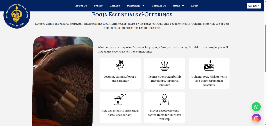 - Multiple pooja-type options and group size selections