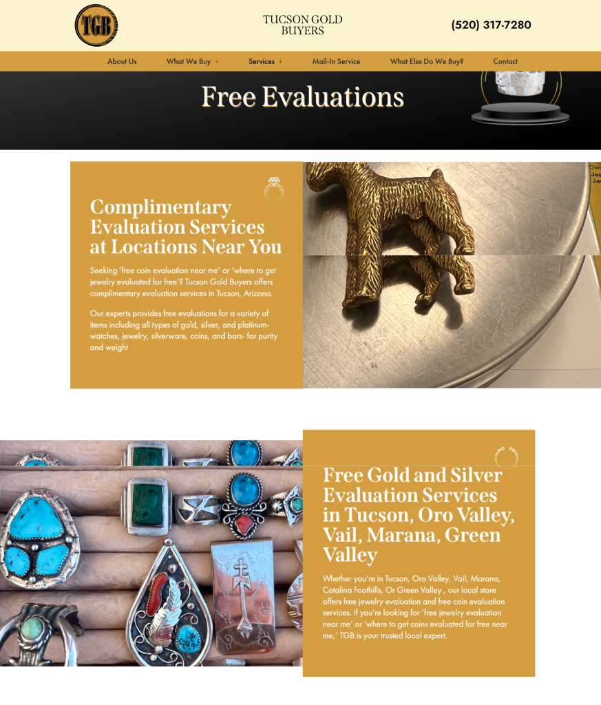 The revamped digital presence transformed Tucson Gold Buyers from a low-visibility local listing into a trusted, lead-generating online destination for customers across Tucson.