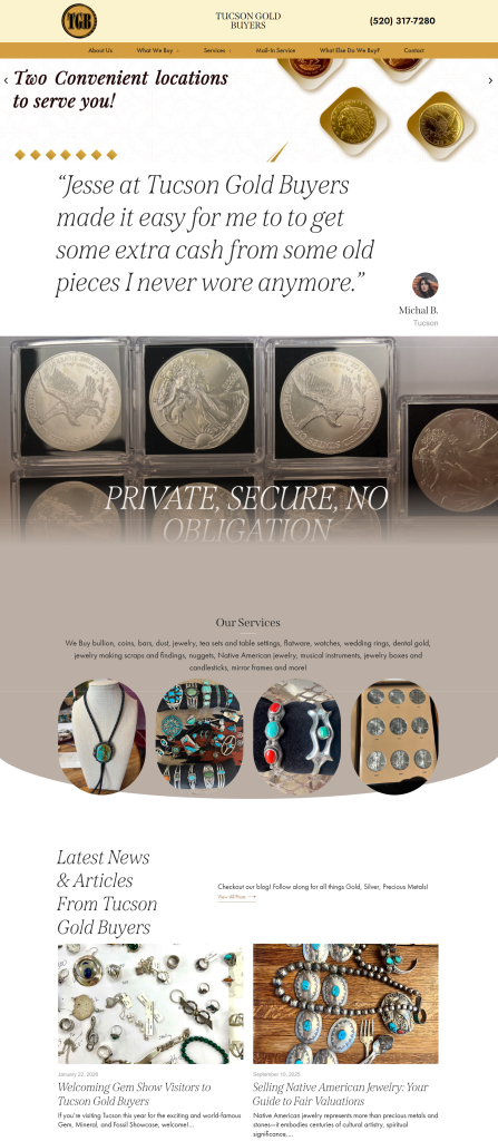 We designed and developed a complete digital transformation for Tucson Gold Buyers — rebuilding trust, improving local visibility, and generating consistent qualified leads.