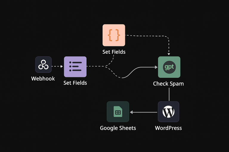 The WordPress Spam Filter Agent is an automated n8n workflow designed to protect websites from fake submissions, bot-generated messages, and low-quality leads.