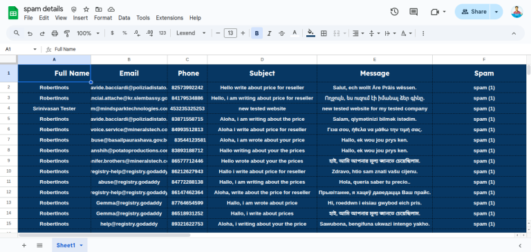 - Spam Logging for Analysis : All spam entries are sent to a Google Sheet log for audit, which helps in analyzing spam patterns over time.