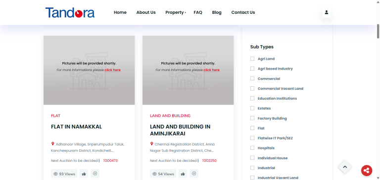 The Tandora platform provides a centralized system where users can browse, filter, and evaluate bank‑auction assets based on location, property type, and verification status. It displays upcoming auctions, reserve prices, and key asset attributes. The platform also includes buyer assistance such as consulting, legal due‑diligence support, and availability of FAQs to educate first‑time participants.